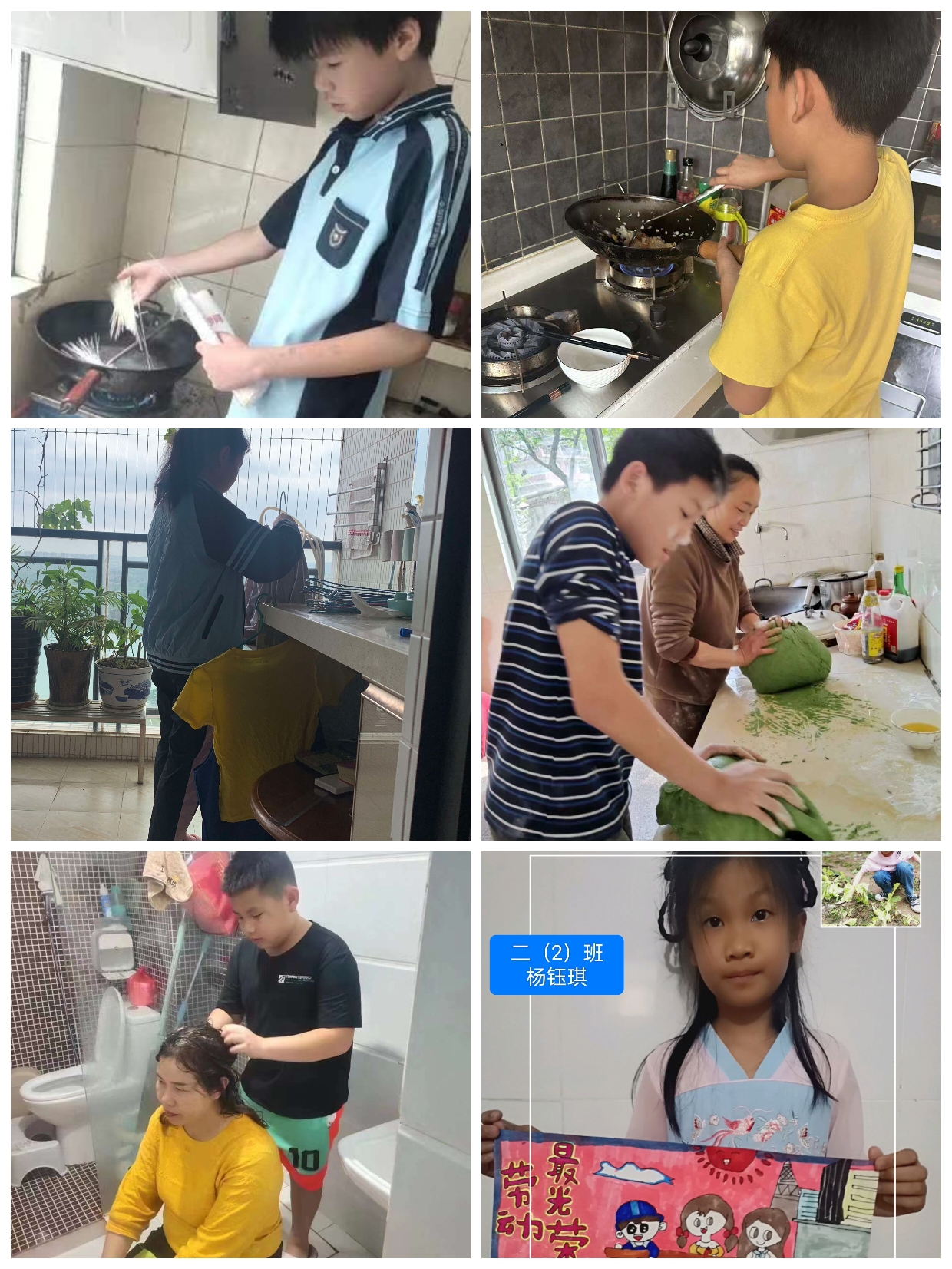 为培养孩子学会从力所能及的家务劳动做起,学会料理自己的生活,养成自己的事情自己做的习惯,并在劳动中感受父母的艰辛,培养学生的自理能力,锻炼学生的劳动实践能力,五一国际劳动节期间,学校布置了“五一”国际劳动节德育实践作业。同学们积极参与,认真完成,在“五一”小长假期间,体会到了劳动不易,学习到了各种生活技能,给认真完成任务的孩子们点赞!